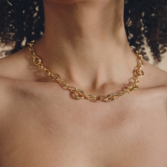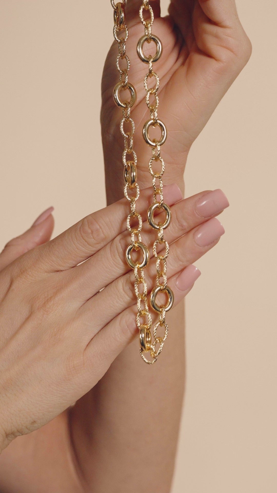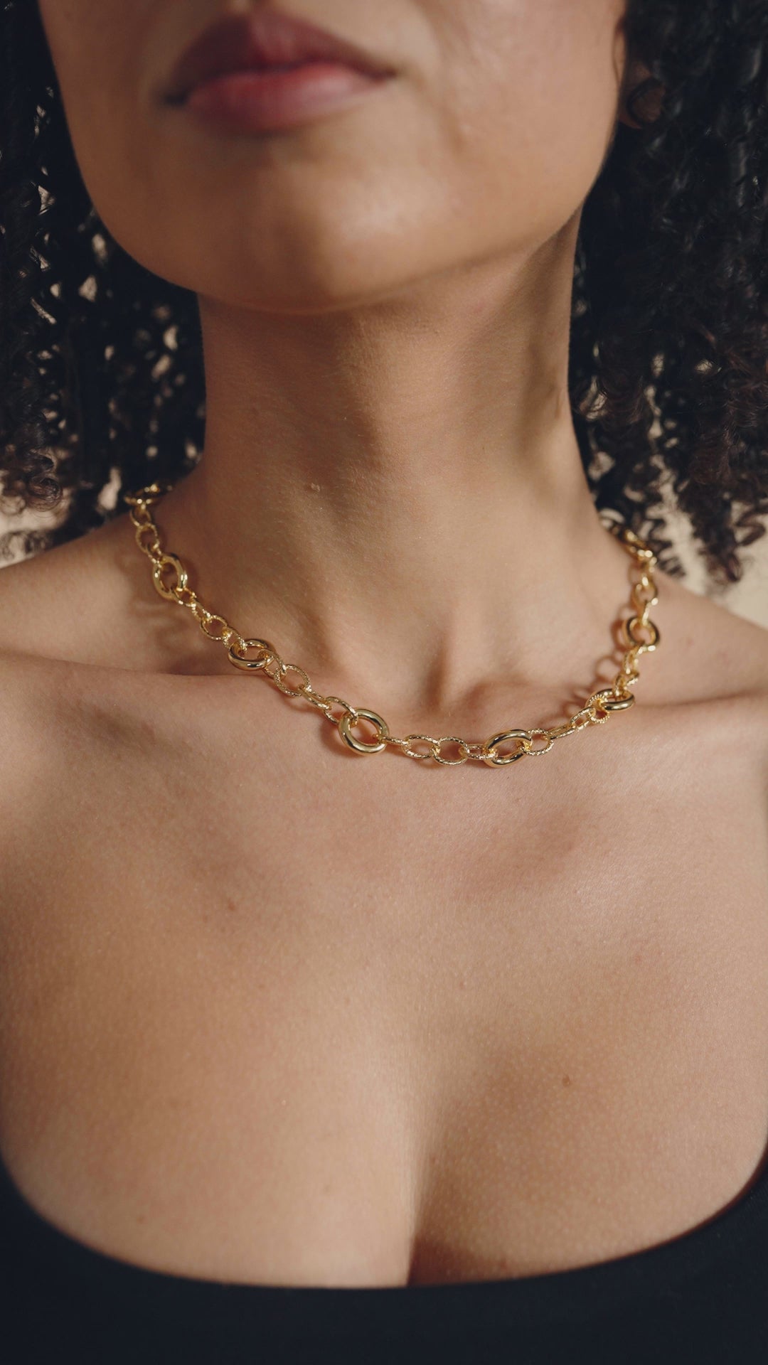 Elevate your look with our Carter Round Statement Link Necklace. Crafted with intricate round links and a stunning statement chain, this necklace is a sophisticated addition to your jewelry collection. Make a bold statement with this luxurious piece.