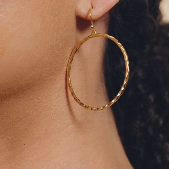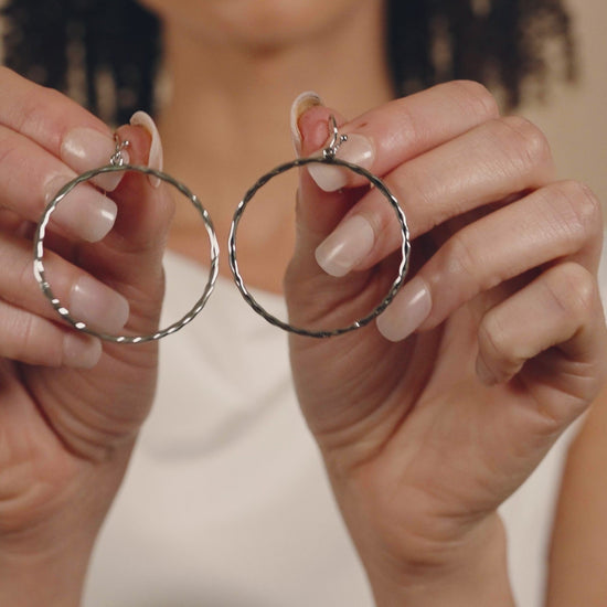 Every woman could use another pair of hoop earrings! This unique pair of dangle earrings are available in gold, rose gold, and silver, meaning that you can choose the perfect shade to match your style or your favorite outfit. Or buy them all -- it's hard to resist!Â