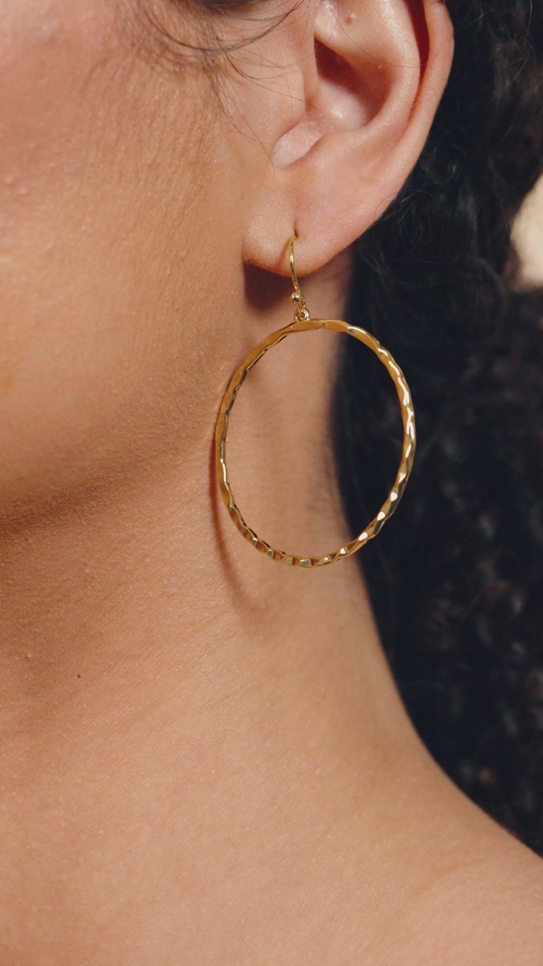 Every woman could use another pair of hoop earrings! This unique pair of dangle earrings are available in gold, rose gold, and silver, meaning that you can choose the perfect shade to match your style or your favorite outfit. Or buy them all -- it's hard to resist!Â