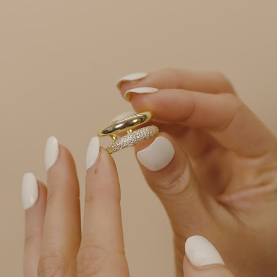 The Maisey CZ Studded Open Ring effortlessly combines elegance and edge. Featuring a double row of stunning CZ stones, this open ring adds a touch of sophistication to any look. The unique design allows for an adjustable fit, while the single layer of CZ stones adds a touch of luxury to the overall look. Elevate your jewelry collection with this exclusive piece.