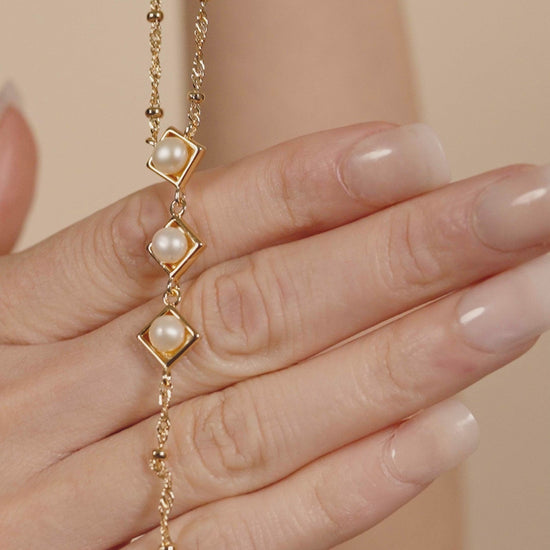 Features: Measures 16" with 2" extender, 3.75" drop, 0.35" pendants, 5mm pearls, 2mm chain, Lead & Nickel free, lobster clasp