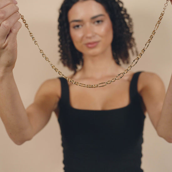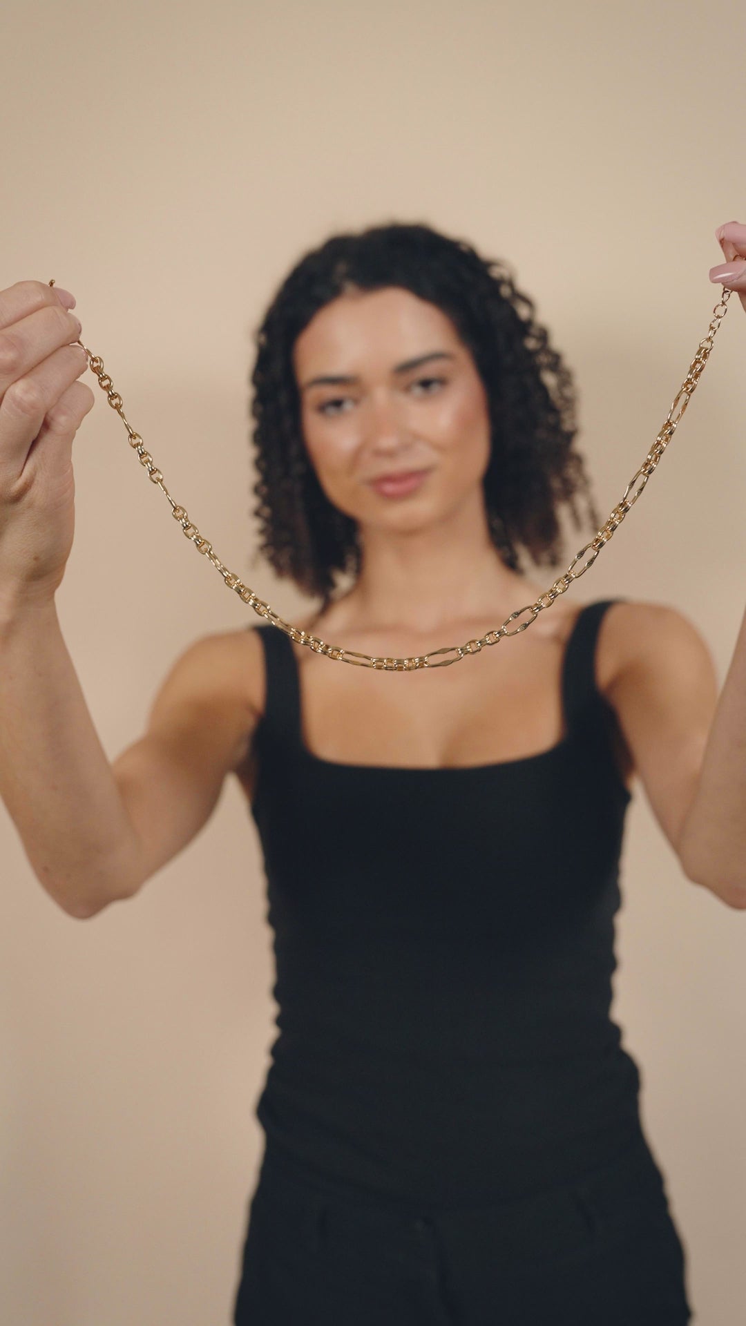 Introducing the Tegan Textured Long Link Necklace - a sophisticated statement piece that exudes luxury and exclusivity. Mixed metal links lend a unique texture, while the elongated length adds a touch of elegance. Elevate any outfit with this one-of-a-kind necklace for a polished and refined look.